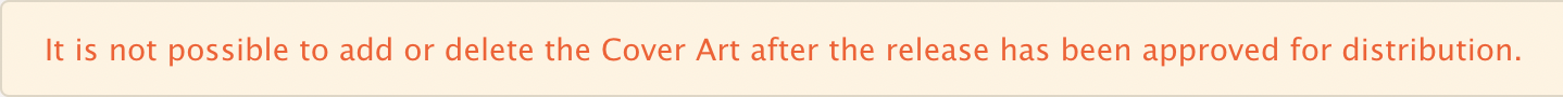- If a release is being distributed and the QC has been approved, Cover Art upload won’t be permitted until the distribution is completed to all channels. You'll see the following message:
